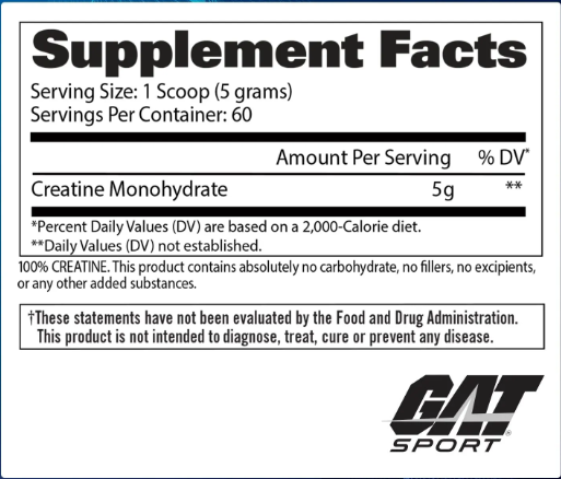 CREATINA GAT-SIN SABOR, 60 SERVICIOS